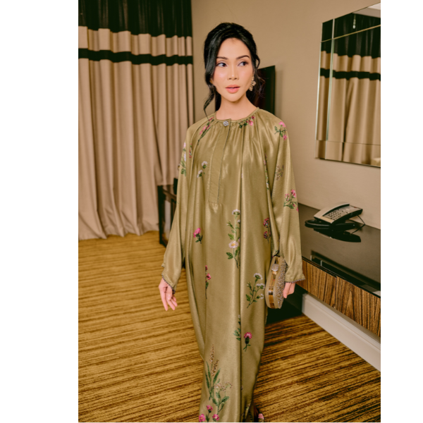Crafted from premium satin, this kaftan gives you that smooth, flowy and luxurious feel the moment you slip it on. Designed with our customise printing, each piece carries a unique statement look that stands out beautifully during Raya gatherings.
